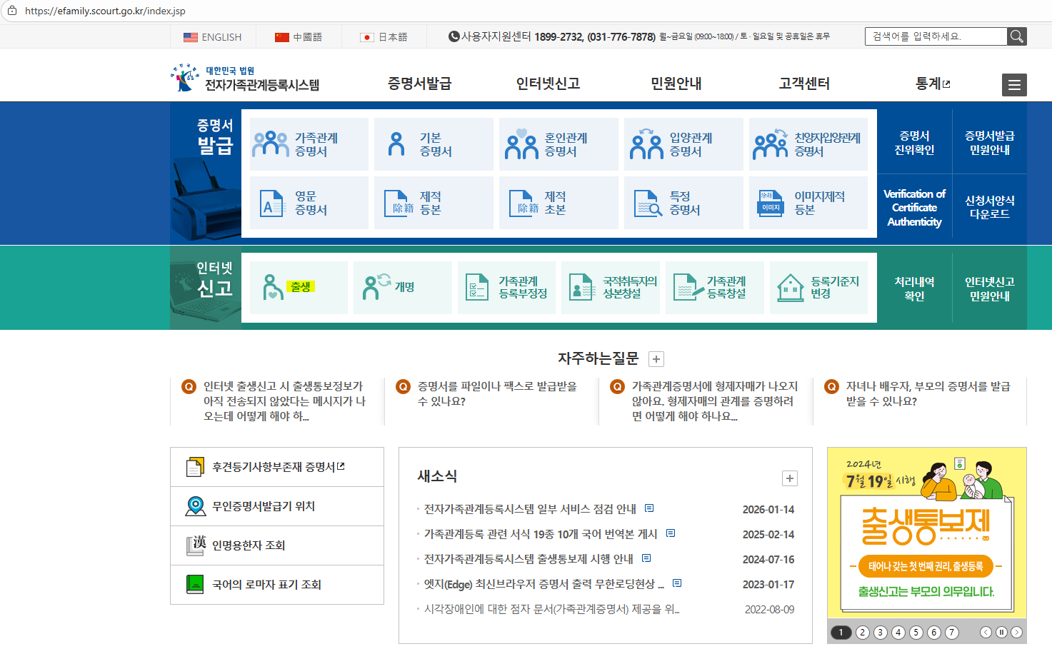 ② 대한민국 법원 전자가족관계등록시스템 신고 (비대면)